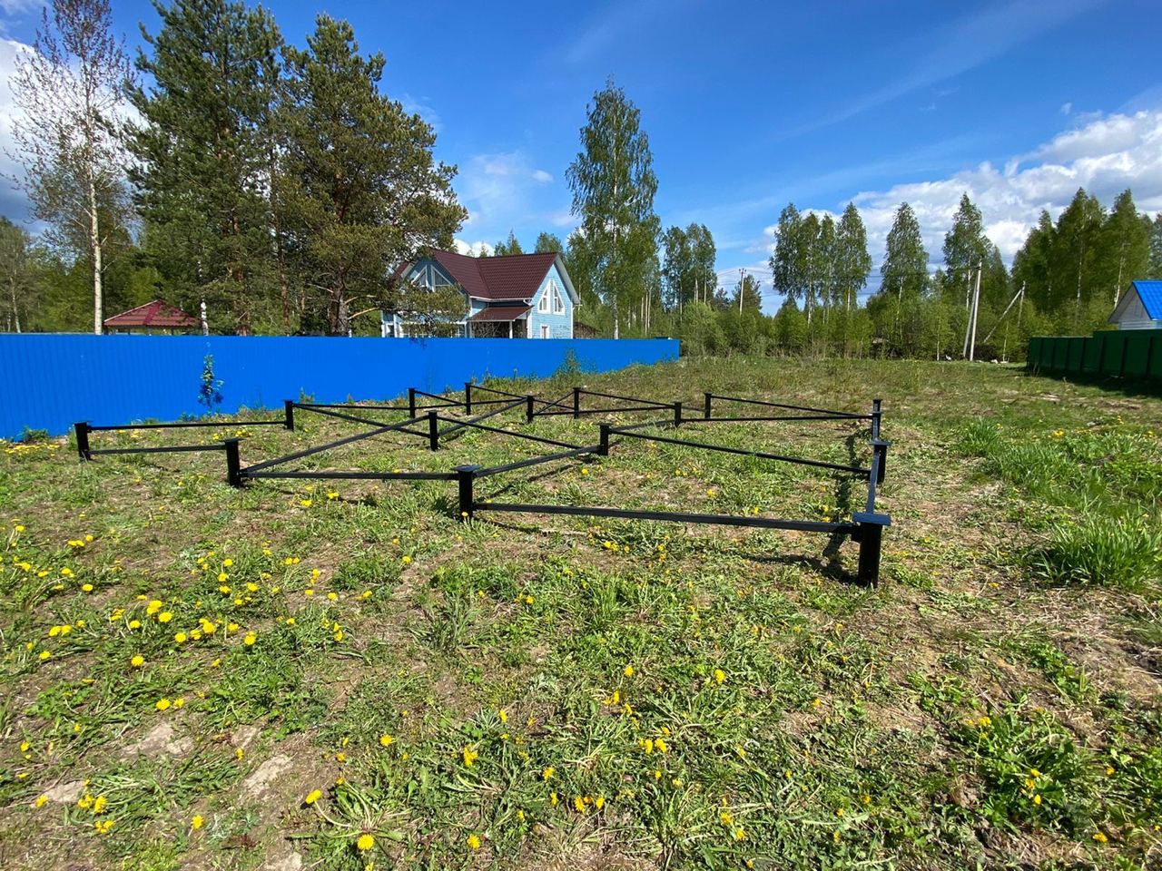 Стоит на первом месте по частоте применения. Его используют на песчаных и подвижных грунтах, там, где подпочвенные воды близко подходят к поверхности, а также на участках со значительным уклоном местности. Вбить металлические сваи можно на любую глубину, что очень важно для площадки с перепадами высот. Себестоимость такого фундамента достаточно низкая.