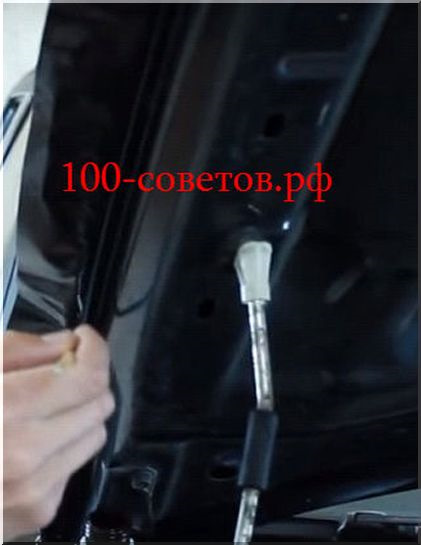 Поднять капот, но перед этим удостоверится, что пленка, точнее ее края, не прилипли к поверхности кузова. В противном случае она порвется. Обработать края, используя праймер. Так, пленка надежно зафиксируется в трудных местах.